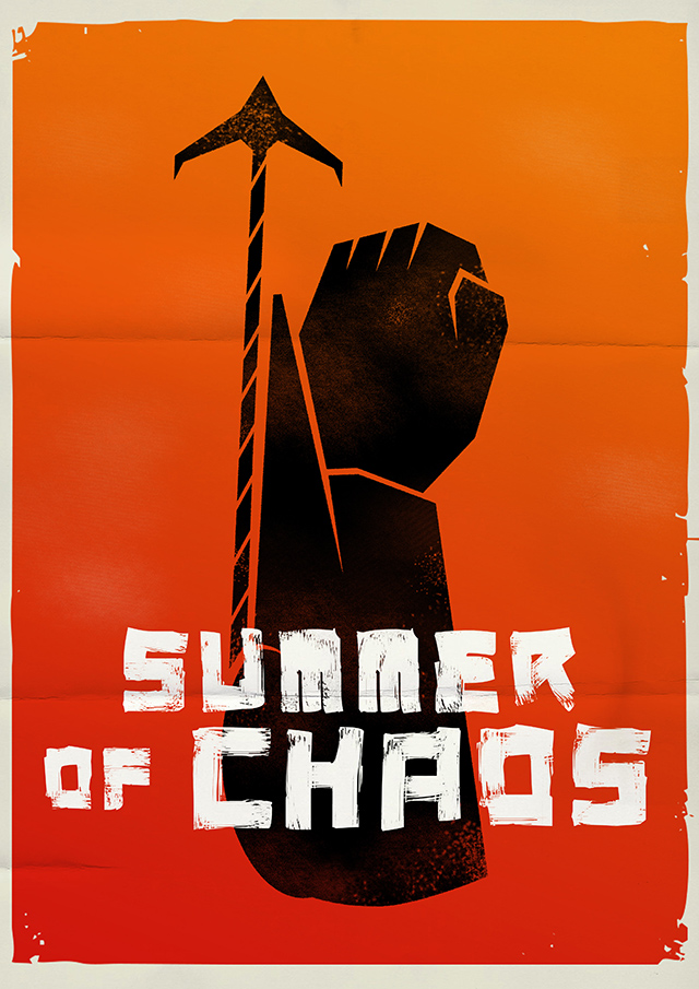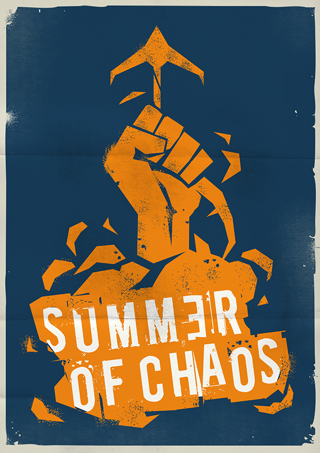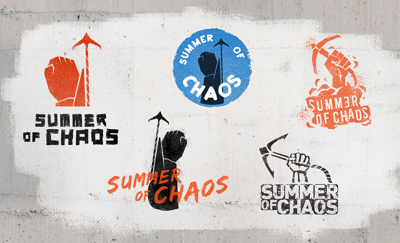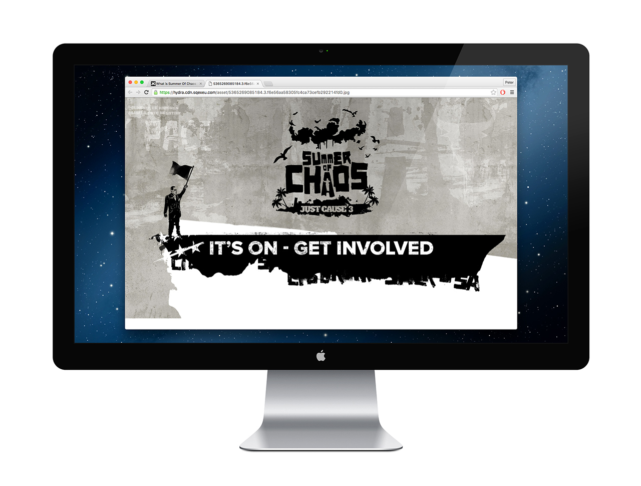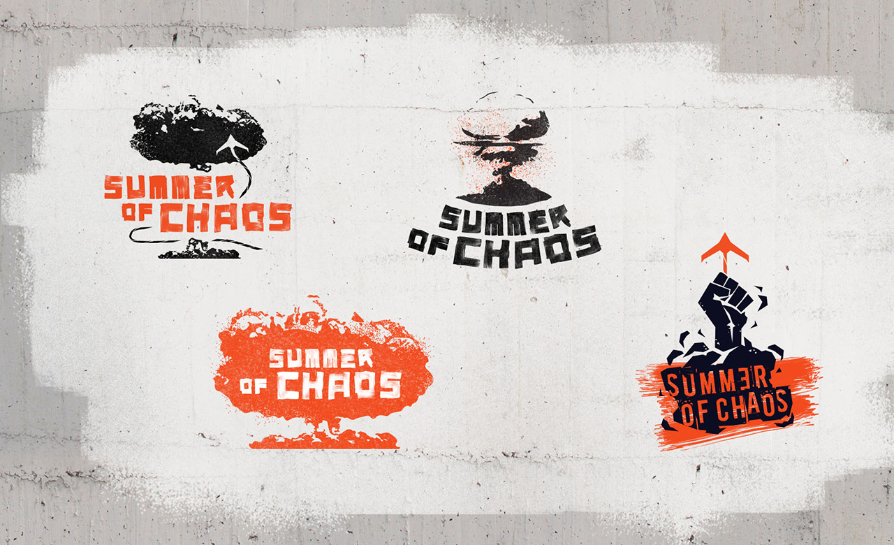 My challenge was to create distinct, exciting and eye catching branding to represent this Just Cause 'Summer of Chaos' community movement. Capturing the essence of JC3's action and explosiveness while utilising the Mediterranean beauty and vibrant colours of the game and brand - portrayed in the style of the in-game graffiti.