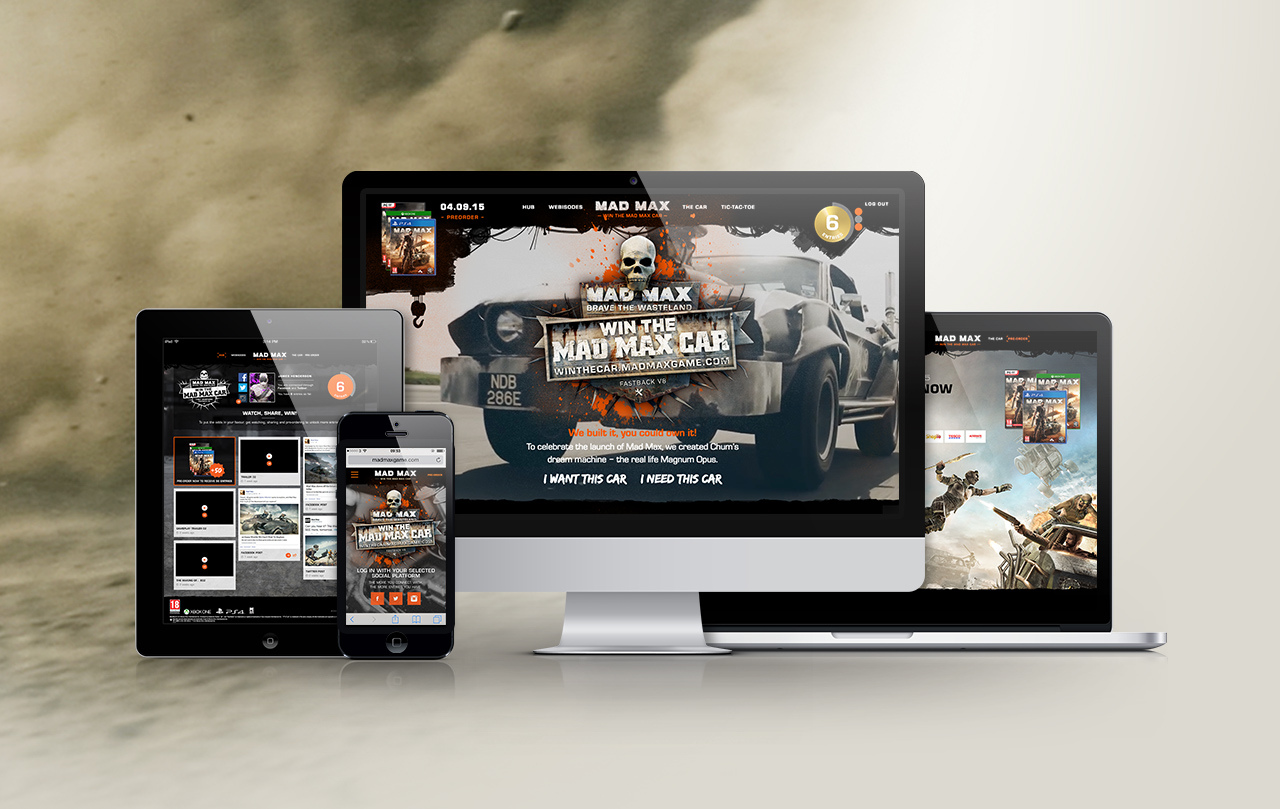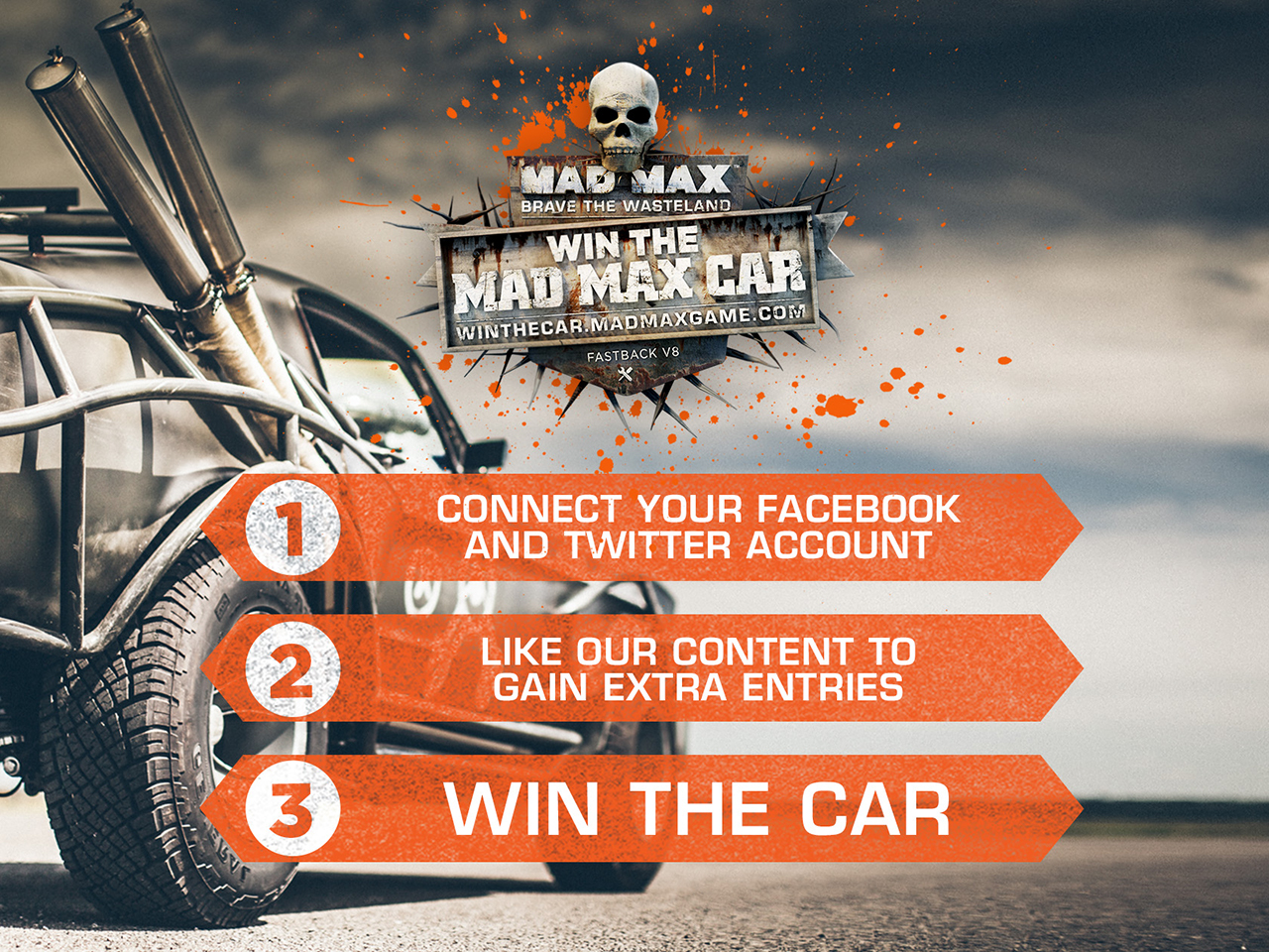 The main focus of the campaign was a competition 'WIN THE MAD MAX CAR!' Users signed up via a website hub and then were encouraged to increase their chances of winning by sharing socially events surrounding the game and the cars creation, which was documented as a serialised video.