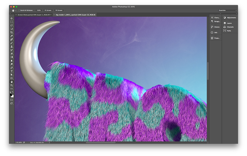 The logo was created in Illustrator then exported to Cinema 4D for modeling, texturing and hair-izing before being finished in Photoshop. The logo was replicated in 14 different languages.